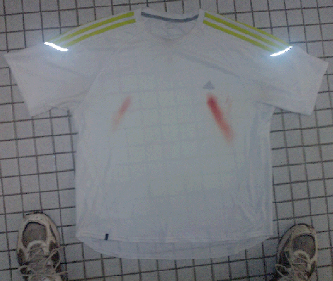 Gestern hatte ich diesbezüglich mit einer anderen Technik versucht, mein Laufshirt individuell zu gestalten. Ich lief einfach 15 km in einer (für mich) anspruchvollen Pace von 4:45 und fertig war das Shirt, sieht dann so aus: